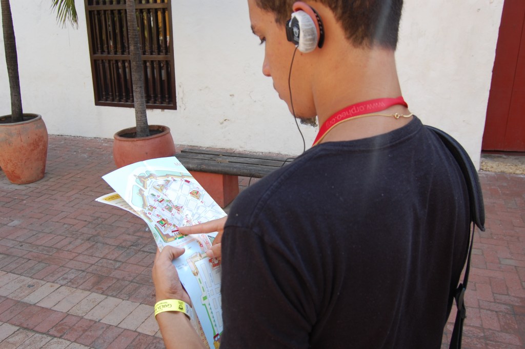 Map. Headphones. Just your everyday tourist chic.